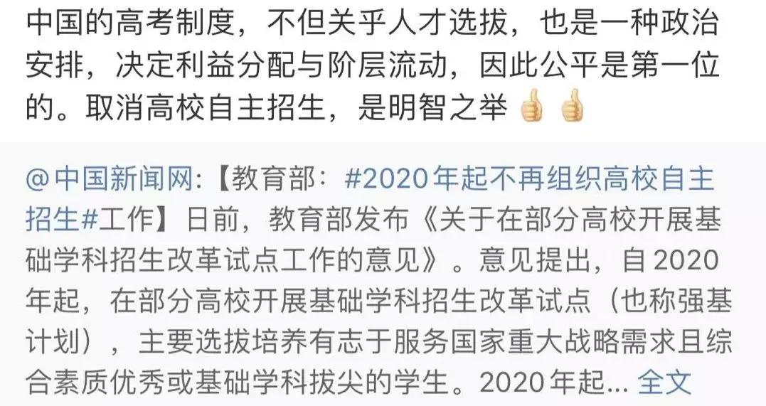 所以,強(qiáng)基計(jì)劃的實(shí)施無論是對考生還是高校來說都具有一定的積極作用。微博上網(wǎng)友們的評論也全部都是支持: