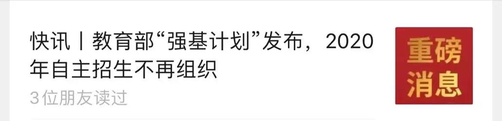 小編立馬就到教育部網(wǎng)站去查,文件真的下來了。2020自主招生取消,由強(qiáng)基計(jì)劃代替。