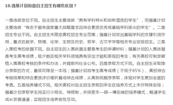 正是近些年自主招生一直在出現(xiàn)新問題和新挑戰(zhàn),教育部在深入調(diào)研之后決定取消自主招生,由強(qiáng)基計(jì)劃取代。那么強(qiáng)基計(jì)劃又是怎么一回事兒呢?