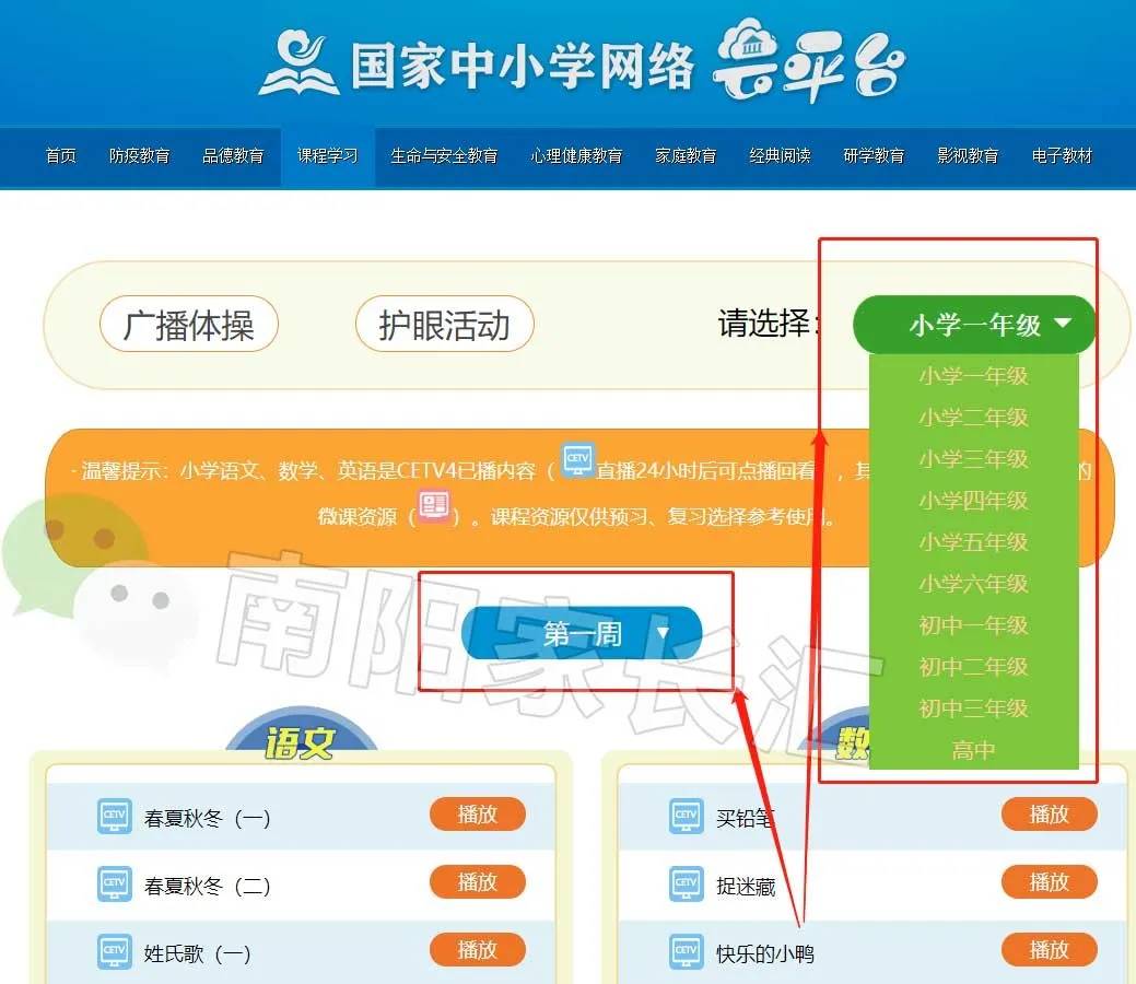 南陽家長匯注意到,這次更新更加貼合學(xué)生們的需求,突出了課程學(xué)習(xí)和電子教材,同學(xué)們再也不用為教材發(fā)愁了,平臺集合了所有版本教材的在線瀏覽和下載的鏈接。點(diǎn)開課程學(xué)習(xí)后,在右側(cè)點(diǎn)擊請選擇,里面有從小學(xué)一年級到高中的課程。在中間可以選擇日期,目前已經(jīng)更新兩周,可以很方便的回看。